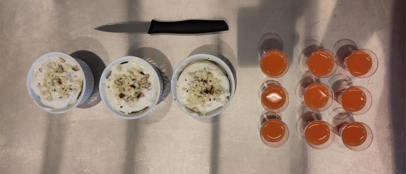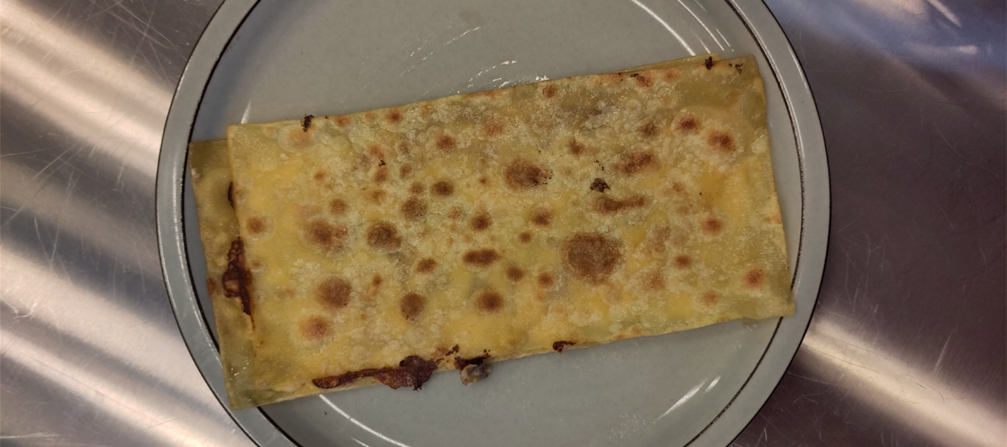 Vi fik fire lasagneplader og 30 minutter til at opfinde en ret. Rammen gjorde det ikke muligt at lave det åbenlyse - en lasagne. I stedet kreerede vi en ”toast” med ost og skinke mellem to kogte lasagneplader - denne blev efterfølgende stegt i smør. Til dessert: lasagneplader i vaniljeskyr.